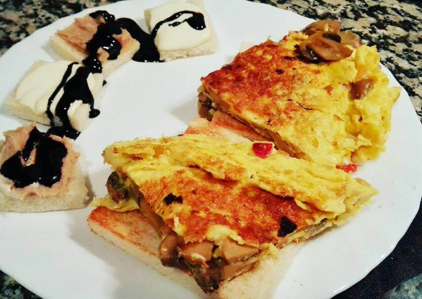 Tostas de tortilla de champiñones al ajillo